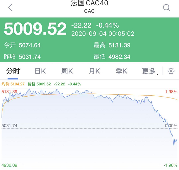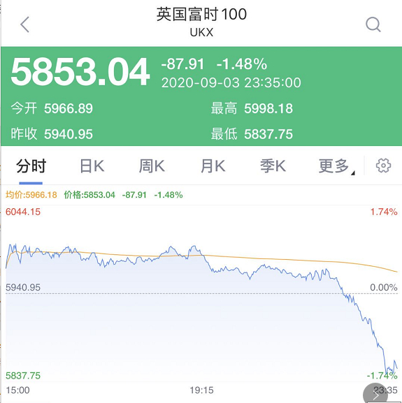 欧股方面,欧洲各大尾盘扩大跌幅,英国富时100指数日内跌幅达1.5%,德国跌了1.4%,法国跌了0.4%
