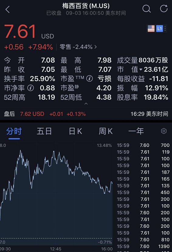 与此对应的,受益于经济重启的公司股价则出现了逆势上涨,其中邮轮股嘉年华上涨5%,梅西百货大涨超过7.9%。