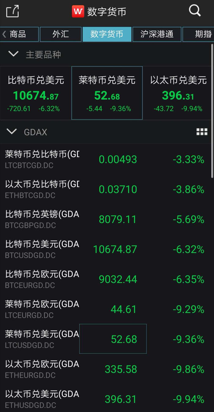 昨夜数字货币也集体暴跌,其中比特币重挫720美元,跌幅达到6.32%。
