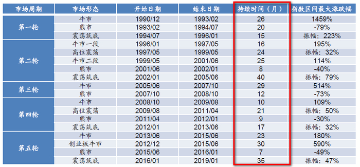 1990年以来,A股一轮牛熊周期平均耗时5-6年。