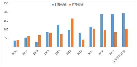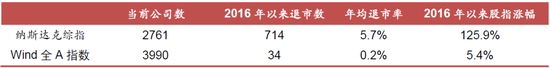图表16 2016年以来A股和纳斯达克退市数量及指数表现