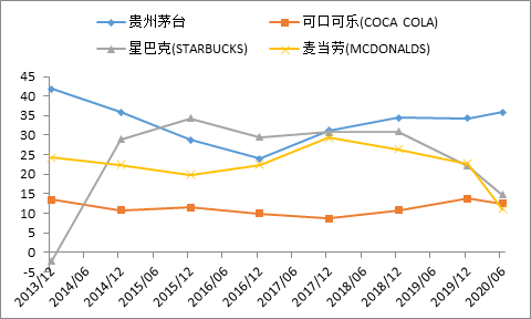 图表7三个美股消费龙头公司与贵州茅台ROA对比