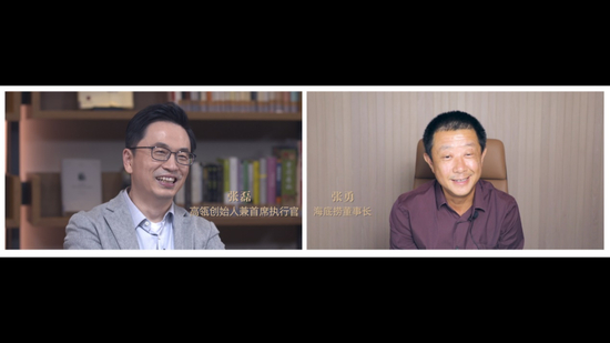 张磊:看看张勇非常深邃的眼睛,在思考着什么事情跟我们也分享分享,包括也分享一下什么海底捞学不会,或者海底捞学得会?