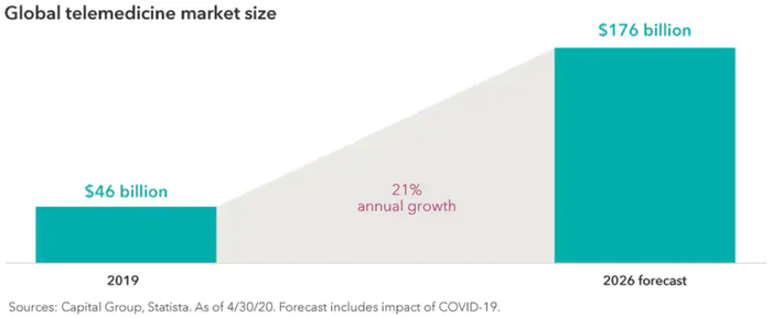 全球远程医疗市场规模,资料来源:资本集团、Statista