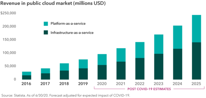 公共云服务市场收入,资料来源:Statista