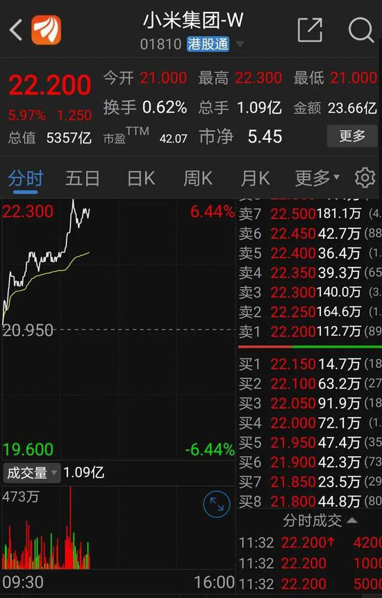 10月12日上午,小米市值突破5300亿港元