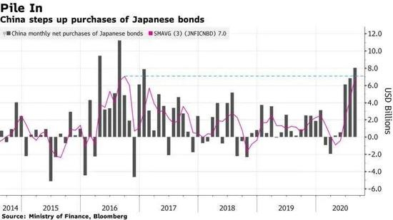 在减持美债的同时,中国加大了对日本国债的投资力度。日本财政部数据显示,今年6月至8月期间,中国买入了2.2万亿日元(约合1399亿元人民币)的日本国债,创下日本国债季度购买量新高。