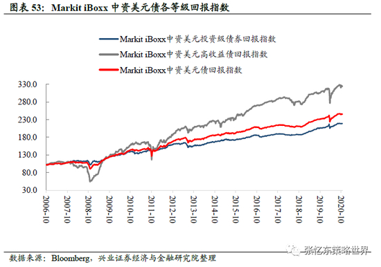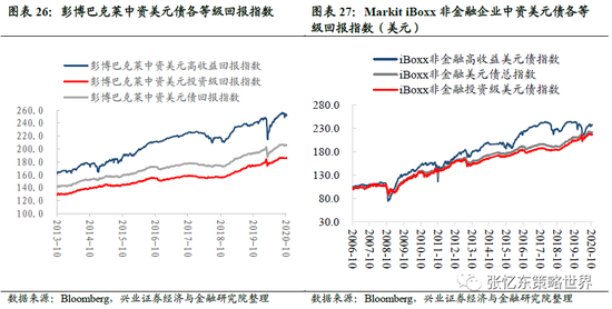 MarkitiBoxx中资美元债各等级回报指数。截至10月23日,相较于上周五,MarkitiBoxx中资美元债回报指数跌0.03%至245.5,高收益债回报指数跌0.37%至324.8,投资级债回报指数涨0.19%至218.8。
