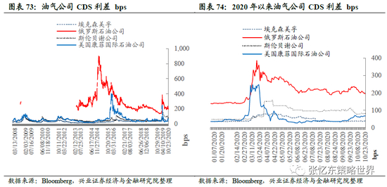 油气公司CDS利差:相较于上周五,埃克森美孚利差下降1.5bp至38.4bps;俄罗斯石油公司CDS 下降14.9bp至194.4bps; 斯伦贝谢公司CDS下降3.2bp至80.6bps; 美国康菲CDS上升1.8bp至66.6bps。
