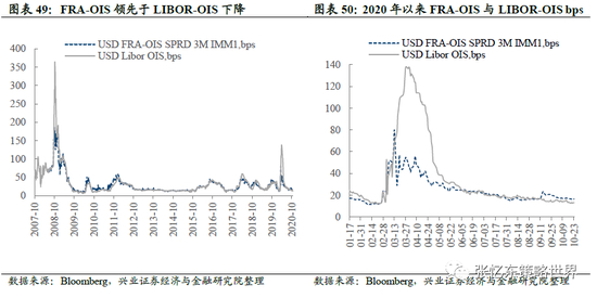 截至10月23日,相较于上周五,FRA-OIS下降0.2bp至16.6bps,LIBOR-OIS下降0.5bp至13.1bps。