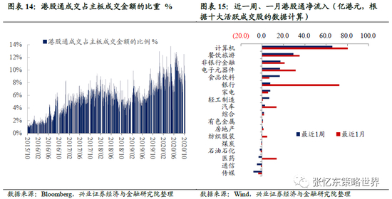 港股通资金净流入:本周港股通资金净流入105.2亿人民币,自开通以来累计买入成交净额达13633.1亿人民币。从十大活跃成交股的数据来看,南向资金主要流入计算机、餐饮旅游和非银行金融,流出传媒、通信和医药。