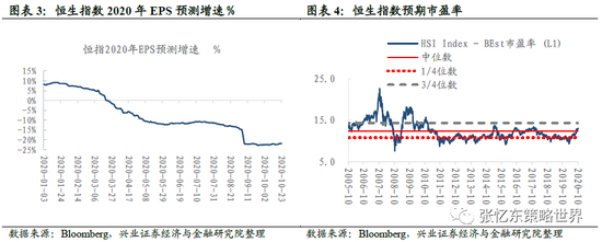 截至10月23日,恒生指数2020年EPS预测增速为-21.9%。
