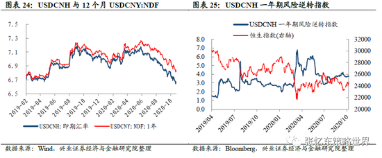 汇率市场:截至10月23日,美元兑港元汇率为7.7501;USDCNH即期汇率为6.6668,12个月人民币NDF为6.8235。USDCNH一年期风险逆转指数为3.99,高于上周五的3.78,处于2011年以来的71%分位数水平。