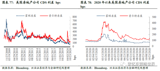 美国房地产公司CDS利差:相较于上周五,本周霍顿房屋公司CDS利差下降7.03bp至66.2bps,普尔特房屋公司CDS利差上升23.6bp至137.5bps。