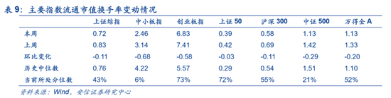 从换手率来看,本周主要指数换手率均有所下降,市场明显降温。本周上证综指,中小板指,创业板指,上证50,沪深300,中证500,万得全A的流通市值换手率分别为0.72%,2.46%,6.83%,0.39%,0.58%,1.13%,1.13%,分别较前周变动-0.11,-0.68,-0.58,-0.03,-0.11,-0.29,-0.20个百分点,分别处在43%,6%,73%,72%,55%,21%,52%分位数水平。