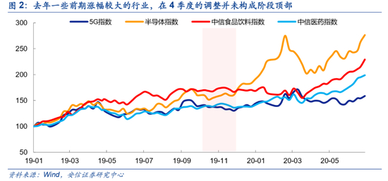 这在过往也出现过,例如去年四季度,在前三季度表现强势的消费和科技行业由于基金的调仓操作也出现了一段时间的调整,但因为基本面和流动性环境没有构成根本变化,单这类操作本身往往无法形成相关板块的顶部。