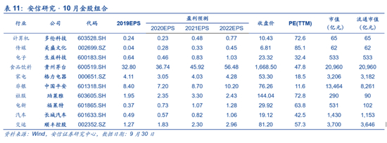 因此,我们认为当前阶段配置方向适宜以顺周期景气为主线,综合考虑四季度A股机构行为特征,兼顾估值与今年涨幅情况,重点关注:保险、银行、白酒、白电、汽车、苹果链等。