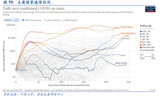 秋冬季欧美疫情吸引投资者目光,10月21日,世卫组织宣布全球累计新冠病例超4000万例。23日,法国24小时内新增新冠病例41622例,达到自疫情暴发以来单日新增病例的最高纪录,法国政府决定扩大宵禁地区范围。