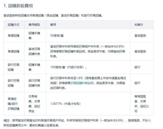 而认购手续费则由投资者的开户券商收取。一般券商申购每只新股的申购费为50-100港元,无论投资者最后是否中签均需缴纳。