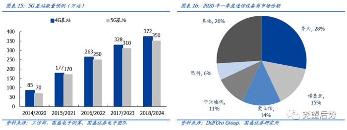 (1)5G:国内5G部署加速,行业龙头领先全球。相比传统的信息通信技术,5G被赋予更多应用可能,与云计算、物联网等新兴产业紧密结合,深入工业、消费、医疗、教育等各个领域,对未来的生产生活产生深刻影响,是“十四五”规划中数字中国、智能中国等发展方向的基础,未来有望加速部署。5G行业华为、中兴双寡头,专利技术领先全球,占据庞大市场份额,“马太效应”凸显并将持续强化。