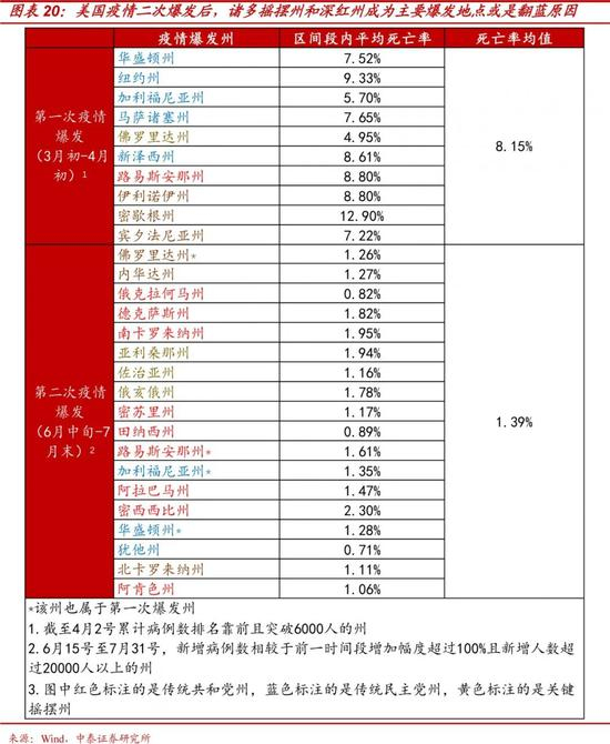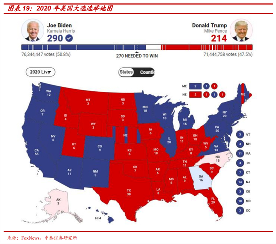 风险提示:特朗普目前仍在各州进行诉讼、重新计票和企图上诉至最高法院以改变选举结果。虽然其发起的十项计票诉讼都被否决了,亚利桑那等关键州的重新计票工作也已结束。而且由于差距太大,且6名保守派最高法官中有3名是布什家族任内任命的(布什家族本次明确支持拜登),最高法院支持特朗普改变选举结果的概率已非常低了。但理论上仍不能完全排除特朗普通过法律诉讼、重新计票等其他手段改变选举结果的可能性。