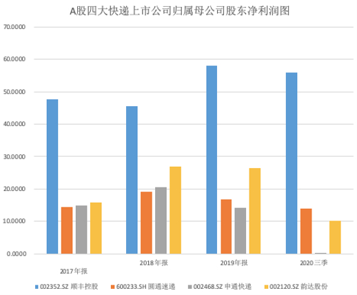 图表3:A股四大快递上市公司净利润对比