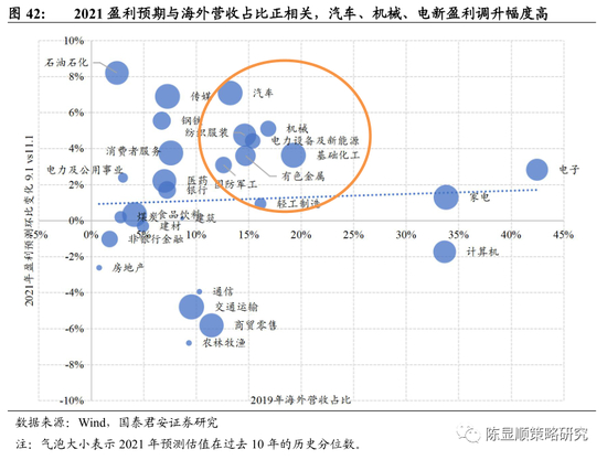 3.1. 行业比较:2021年行业盈利增长预期与海外营收占比正相关