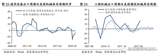 ▶ 出口制造链扩张辐射哪些产业?1)供给替代维度:机械制造借力切入新供应链体系,附加值高更易实现长期份额转化。中国制造对发达国家占出口比较优势的机械制品生产替代效应更强。以疫情为契机,中国对美机械制品出口份额较快扩张。高附加值产品订单粘性强,短期订单转移更易转化为长期份额提升。相关赛道关注机械设备(办公设备/通用设备/工业设备)、电子元器件、小家电。2)库存周期维度:发达经济体库存降至历史低位,地产施工、地产后周期消费补库潜力高。美国总库存降至历史10%分位以下,补库领先指标零售业库存率先回升,需求侧看房地产、汽车行业补库潜力高,有望带动地产施工和地产后周期消费行业出口。相关赛道关注建材相关化工品、家电、家具、工程机械、汽车零部件。3)创新周期维度:5G创新和能源转型双轮驱动,绿色智能是工业4.0发展长期方向。市场对智能手机和TWS出货展望乐观,AR硬件商用有望成为消费电子新增长点。受益新能源车全球加速渗透,中国锂电产业链出海扩张。全球碳中和目标升级,光伏预计成为新电力支柱。相关赛道关注:电子(面板、功率半导体、苹果产业链)、通信(云计算)、新能源汽车(电池)、光伏。