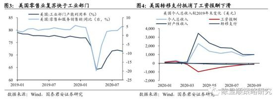 海外消费复苏快于工业生产,这可能与财政补贴、线上零售普及、疫情防控导致的生产成本上升有关,疫情期间财政转移支付抵消了工资报酬的下降,美国个人总收入实质高于正常时期。我们以全美零售销售额和制造业出货量增速差来衡量产需缺口,我们发现产需缺口与新增病例趋势正相关,随着9月中旬美国疫情的二次反弹,产需缺口再度扩张。