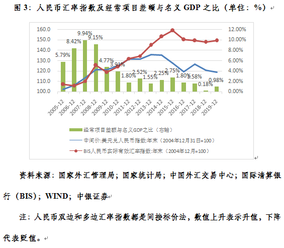 这一方面表现为通过汇率升贬值的调节,促进宏观经济内外均衡。如2008年危机以来,我国通过调结构、扩内需、减顺差、促平衡,辅之以人民币双边和多边汇率升值,推动了经济再平衡。自2010年起,我国经常项目顺差与GDP之比已降至4%的国际警戒标准以内,2018和2019年该项占比连续两年不到1%。鉴于对外经济平衡状况的改善,国际货币基金组织自2016年起一再强调人民币汇率符合中长期基本面水平,既没有高估也没有低估。这有力地驳斥了国际上对我“货币操纵”指责的不实之词。