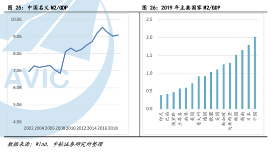 和新增信贷对GDP贡献度对应的是08年以后,我国M2和GDP的比率出现了明显的上升趋势。这表明大部分流动性并没有进入到我国实体经济当中,金融体系服务实体经济的能力低下。这一情况虽然在2016年政府的大力改革中有所缓解。但截止到2019年底,我国经济脱实向虚的风险仍高于其他经济体。