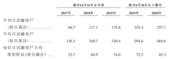 对此,快手管理层回复称,这是因为用户基数本身比较大,公司也在通过广告和营销等方式拉新,提升日活跃用户增长速度。招股书显示,截至2020年6月30日,快手的平均日活跃用户约为2.58亿,日活跃用户在快手应用的日均使用时长超过85分钟。