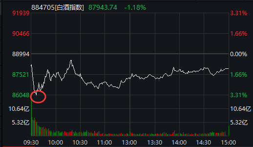 白酒指数早盘一度下跌超3%,截至收盘,仍然整体下跌1.18%。