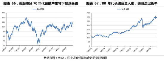权益时代新格局下,第三支柱养老金入市,夯实A股长牛行情基石。税收优惠将第三支柱个人养老金缴费长期锁定在养老账户中,直至退休方能领取。因此,第三支柱养老金是典型的长期资金。而以养老金为代表的长期资金是股市中坚定理性投资、维护市场秩序的重要机构投资者,无疑是长牛行情“基石”。从美股的历史经验可知,在20世纪70年代,美股市场在散户主导下暴涨暴跌,而在80年代,随着401k制度下机构资金等长线资金入市,80年代美国股市一改70年代的暴涨暴跌,走出了一轮十年之久的牛市。由海外经验可知,第三支柱养老金代表的“长钱”力量,将进一步夯实A股的长牛行情基石。