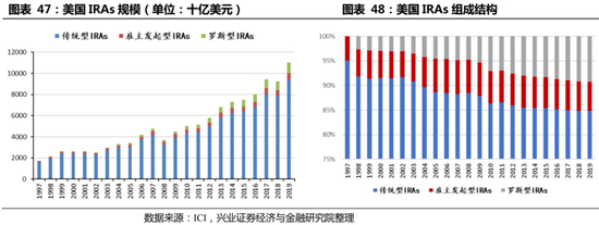 形式更加多元,且不断推陈出新:目前我国养老金第三支柱仅限于税延型养老保险,而海外养老金第三支柱如美国IRA,除了传统IRAs外,还推出了雇主发起型IRAs、罗斯型IRAs等,受惠人群与规模不断扩大。