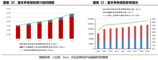 基本养老保险是我国养老金第一支柱的主体部分,具有规模大、覆盖面广的特点,而社会保障基金起补充作用。我国养老金第一支柱包括基本养老保险和社会保障基金,截至2019年底,我国基本养老保险规模达到6.29万亿元,而社会保障基金规模达到2.63万亿元,基本养老保险占主体,而社会保障基金则起到补充作用。2011-2019年间,基本养老保险参保人数对16岁以上人口占比规模从55.49%上升到84.11%,覆盖面广。