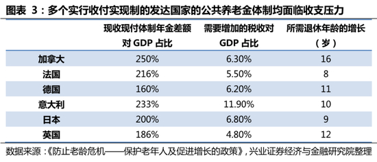 家庭养老体制的瓦解与单一的公共养老金计划越来越难以应对日益严重的老龄化趋势。与子女共同生活的老人减少和子女分担的赡养费比例的下降,都表明家庭养老体制的瓦解,进一步加重了全球的养老压力。以日本为例,1970-1985年间,65岁以上的日本老人与其子女共同生活的比例已由77%下降到65%。而当时占主导的公共养老金体制,也面临着收支压力。世界银行在1993年的统计结果表明,在现收现付的公共养老金体制下,加拿大、法国、德国、意大利、日本、英国等老牌发达国家的公共养老金收支差额分别占GDP 250%/216%/160%/233%/200%/186%,难以应对日益严重的老龄化趋势。