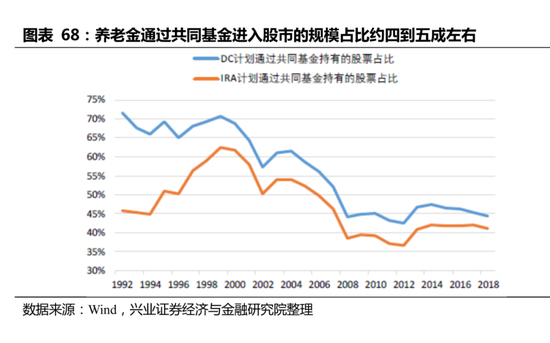 10)由于在1992至2018年间,IRA通过共同基金持有的股票比例在37%至62%之间波动,我们取中值约为50%,即IRA通过共同基金持有的股票资产占比为50%。
