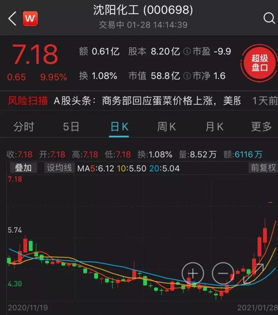 据Wind数据,目前已有中泰化学、沈阳化工、天原股份、东岳硅材等4家化工行业上市公司发布向上修正后的2020年业绩预告。其中,沈阳化工大幅向上修正去年盈利,预计期内将实现盈利2.8亿元-4.1亿元,此前公司在三季度业绩报告中预计全年仅盈利3500万元-5000万元。受此消息提振,公司股价已连续两个交易日涨停。1月28日,沈阳化工报收于7.18元,今年截至目前的整体涨幅已超52%。