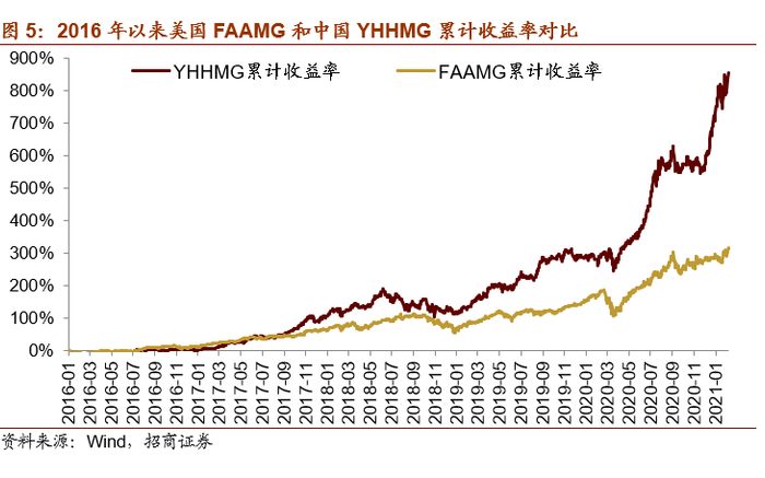 相对应的,中国YHHMG(药明康德、恒瑞、海天、茅台、中免)表现依旧很好。
