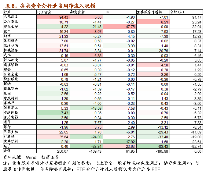 个股方面,北上资金净买入规模最高的为宁德时代,净买入规模39亿元;其他净买入较多的包括长江电力、阳光电源、先导智能等;净卖出规模较高的包括TCL科技、贵州茅台、上海机场、药明康德等。