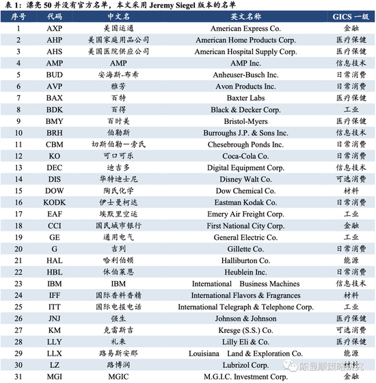 陈显顺表示,70年代美股的“漂亮50” (Nifty Fifty)行情与当前机构抱团龙头股行情有诸多相似之处,具有重要参考价值。漂亮50是指70年代初在美股广受机构投资者追捧的50只大盘蓝筹股,其作为长期价值投资的典范,被视作可以“买入并持有”的优质股。