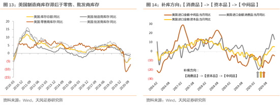 1)从宏观线索看,顺全球生产周期的公司,包括有色、化工、机械、汽车零部件等全球化或全球定价的行业。这部分我们在年度策略中提到过,通过对美国制造商库存和美国进口数据的跟踪可以看到,过去一年美国只有零售商和批发商补了库存,但制造商一直到去年11-12月才逐渐开始进入到补库存阶段;从进口数据也可以看到,去年美国消费品进口增速恢复的非常快,但中间品的进口量则因为生产尚未完全恢复仍处于低位,直到去年四季度才开始慢慢有所起色。因此,从宏观线索来看,顺全球生产周期的这部分公司未来有望迎来投资机遇。