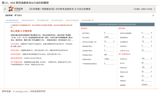 2)经验上来说,过去一些小市值公司从70-80亿或者200亿左右跃迁到500-1000亿的公司,最早都是被量化基金通过基本面因子筛选后所持有或重仓的。在这一方面,我们的选股策略模型,正好可以派上用场,尤其是【景气成长】模型,我们设置了包括盈利能力、盈利趋势、资产质量、财务健康程度在内的20个基本面因子,在每个财报期之后,对所有A股进行基本面筛选,并回测筛选逻辑的有效性。大家可以在我们的网页上(tf-strategy.com)通过任意修改基本面因子,来对股票进行筛选,同时回测筛选逻辑。