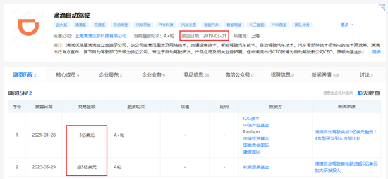 值得一提的是,滴滴从2016年组建自动驾驶技术研发部门,并于2019年8月将自动驾驶部门升级为独立公司,公开资料显示,上海滴滴沃芽科技有限公司为滴滴自动驾驶业务的运营主体,累计融资额超过了8亿美元。