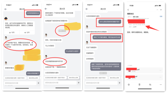 值得注意的是,滴滴金融在申请贷款时无法查阅贷款合同,只能主动向客服索取,客服验证身份后(姓名+身份证号+手机号),提供邮箱地址,客服再向合作方申请发送贷款合同,电话回访后,客户才会收到贷款合同。整个过程即便是经过数次加急处理,客户收到的时间也是在28小时之后,即2月7日13点48分申请,2月8日18点38分收到。