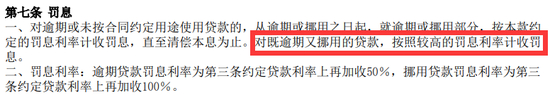 根据滴滴金融与客户所签署的《个人消费借款合同》4.1条的规定:“本笔贷款年利率为35.64%,按日计息。乙方发生逾期的,从逾期之日起,甲方有权对逾期贷款本金按照合同约定的利率加收50%计收逾期罚息。乙方未按约定的用途使用贷款的,甲方有权对挪用贷款金额按本合同约定的利率加收100%计收挪用贷款罚息。”