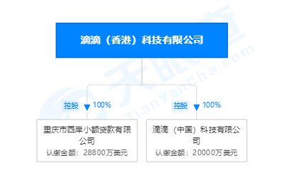 从2月7日的实测结果来看,滴滴金融的放贷主体为重庆市西岸小额贷款有限公司,该公司为滴滴(香港)科技有限公司的全资子公司。