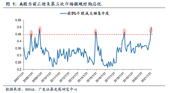 ●A股正迎来第五次市场微观结构恶化。我们于2.24发布《扩散升级》,提出“A股微观结构恶化”,引起了市场的普遍关注。“微观结构恶化”衡量的是市场对局部领域预期过于一致并且市场上最乐观的筹码均已入场/市场上最悲观的投资者已经离场的过程。当前A股成交额排名前5%的个股的成交额占全部A股占比创下历史极值,历史上类似的情形出现过4次,市场均发生了巨大的反转。