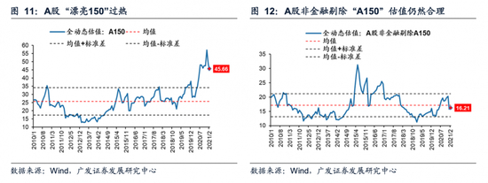 2. 市场微观结构恶化下,市场局部高估但整体并未高估:截至20年底“A150”的全动态PE估值已显著突破10年以来均值+1倍标准差的上限并不断上移,随着市场微观结构恶化“A150”估值遭受剧烈挤压;而A股非金融剔除A150的估值水平并不算高,仍处于10年以来均值下方;